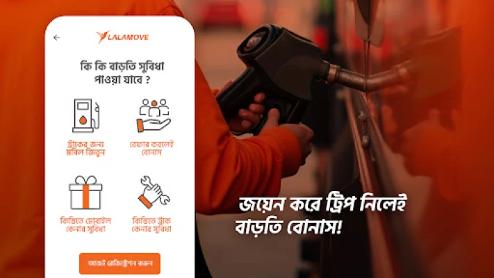 বিস্তৃত লালামুভ ড্রাইভার কমিউনিটিতে যোগ দিয়ে দেশের দ্রুত বর্ধনশীল নেটওয়ার্কের অংশীদার হন। লালামুভ একটি শীর্ষস্থানীয় অন-ডিমান্ড ডেলিভারি প্ল্যাটফর্ম হিসেবে প্রতিদিন লক্ষ লক্ষ গ্রাহককে আপনার মতো নিবেদিতপ্রাণ চালকদের সাথে সংযুক্ত করে, বিশ্বজুড়ে অসংখ্য কাজের সুযোগ তৈরি করে। সম্প্রতি, নির্বাচিত বাজারগুলিতে (যেমন ইন্দোনেশিয়া, মালয়েশিয়া, ফিলিপাইন, থাইল্যান্ড, ভিয়েতনাম) আপনার আয়ের সম্ভাবনা আরও বাড়াতে লালামুভ ড্রাইভার অ্যাপে রাইড-হেইলিং সেবা চালু করা হয়েছে। এখন আপনি একই অ্যাপ ব্যবহার করে ডেলিভারি এবং যাত্রী পরিবহনের উভয় ধরনের অনুরোধ গ্রহণ করতে পারবেন, যা আপনার উপার্জনের সুযোগ দ্বিগুণ করে। আপনার এলাকার চাহিদা এবং আপনার সুবিধা অনুযায়ী এই পরিষেবাগুলোর মধ্যে অনায়াসে পরিবর্তন করুন, সম্পূর্ণ নমনীয়তা এবং প্রতিযোগিতামূলক ভাড়ার সুবিধা নিয়ে কাজ করুন।