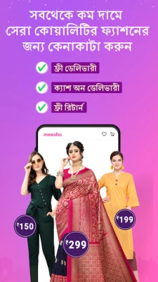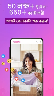 মীশো অ্যাপ ব্যবহার করে নিজের জন্য স্টাইলিশ লাইফস্টাইল পণ্য কিনুন বা অনলাইনে অর্থ উপার্জন করুন। সেরা কোয়ালিটির পণ্য সব থেকে কম হোলসেল দামে পান। কোনো বিনিয়োগ ছাড়াই রিসেল করে আপনার অনলাইন ব্যবসা শুরু করুন।