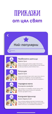 Приказките অ্যাপে আপনি প্রিয় বুলগেরীয় লোককথা এবং গ্রিম ভাই, শার্ল পেরো ও অ্যান্ডারসেনের ধ্রুপদী গল্প শুনবেন। জাপান, রাশিয়া, গ্রীস, ইতালি, জর্জিয়া, আফ্রিকা সহ বিভিন্ন দেশ ও লেখকের বৈচিত্র্যময় রূপকথা এখানে আবিষ্কার করুন।